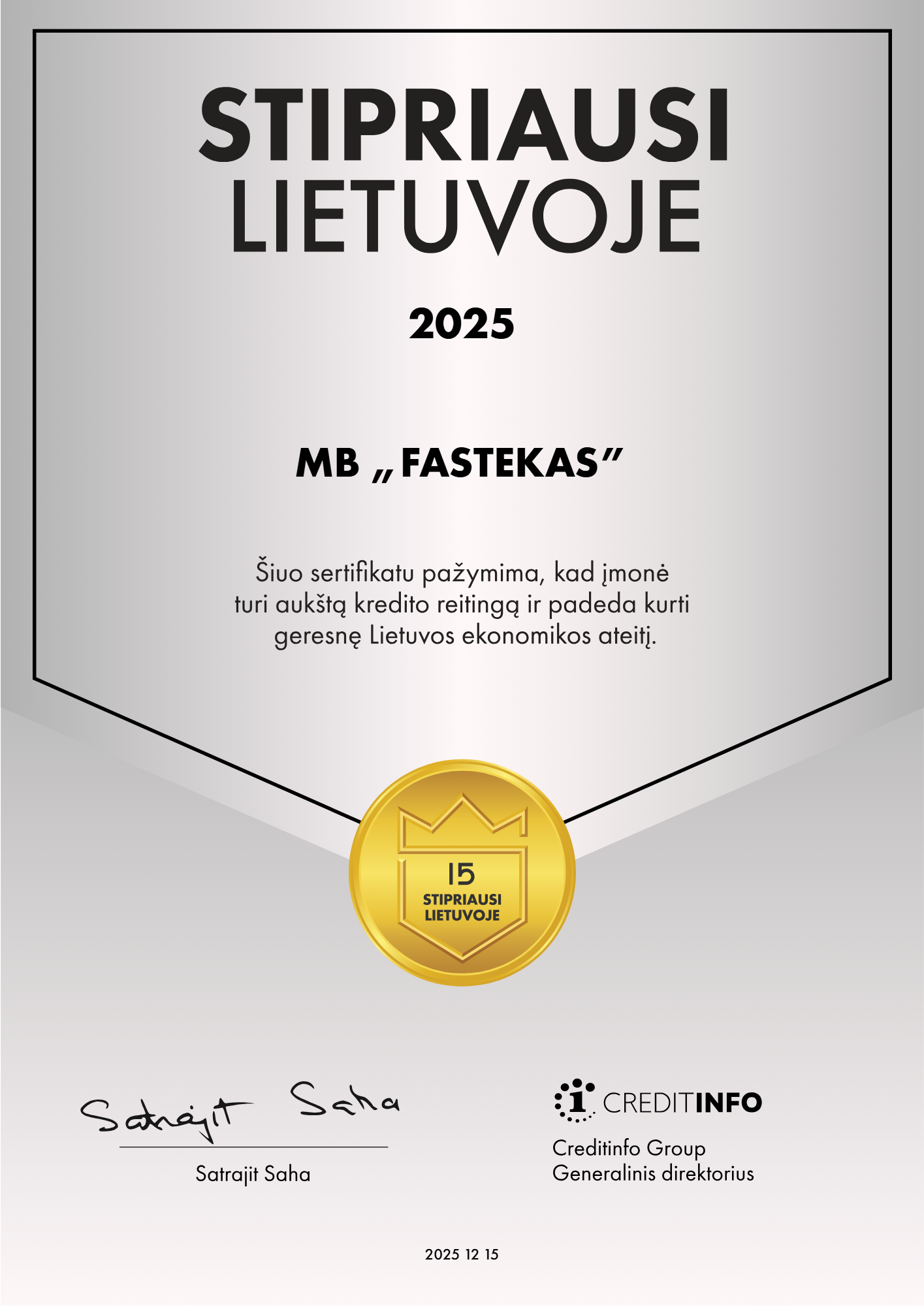 Fastekas Logistics is nominated among the most financially strong and reliable companies in Lithuania, characterized by a high credit rating and sustainable operations.